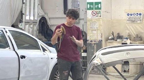 Francesco De Vitis classe 2001; dal 2019 lavora quotidianamente nei vari reparti di Carrozzeria Tasso per imparare, passo dopo passo, tutti i "segreti" del mestiere.